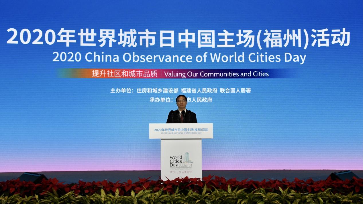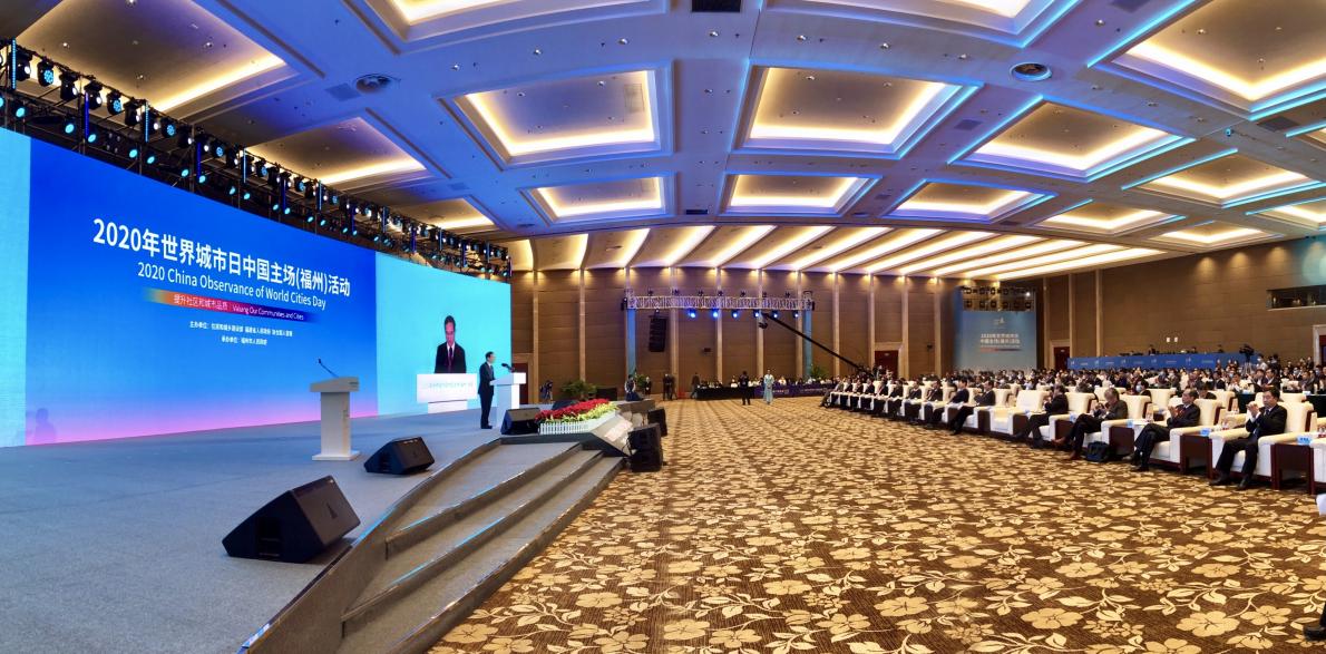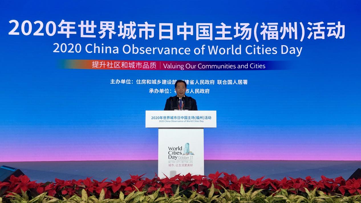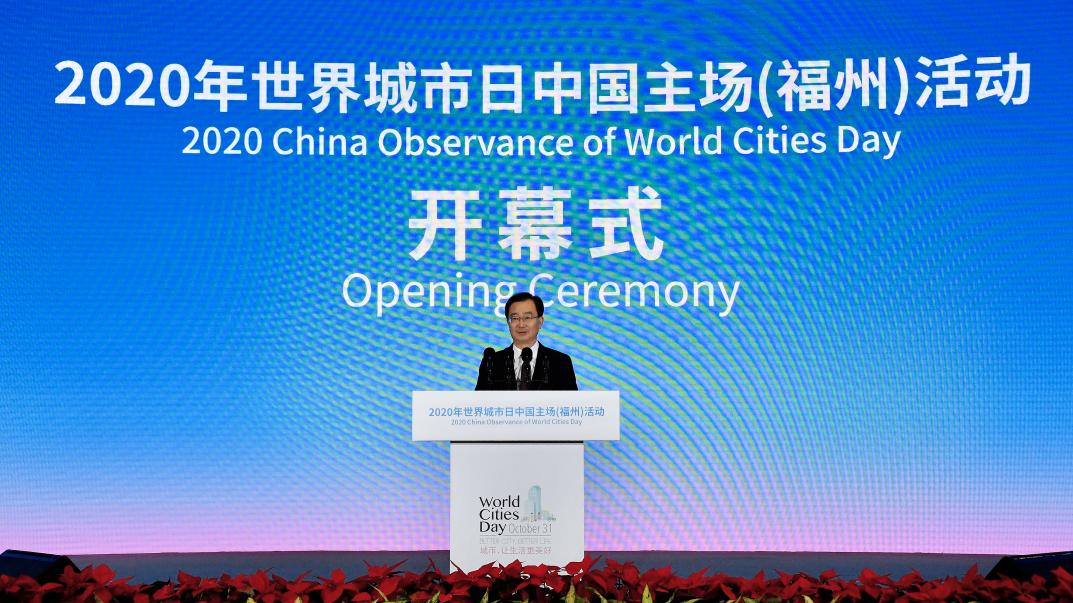 October 31, 2020 marked the seventh observance of World Cities Day. The 2020 China Observance of World Cities Day was jointly held by the Ministry of Housing and Urban-Rural Development of the People's Republic of China (MOHURD), the People's Government of Fujian Province, and UN-Habitat in Fuzhou. Mr. Wang Ning, Governor of Fujian Province, attended the event and officially declared its opening. Mr. Jiang Wanrong, MOHURD Vice Minister, Mr. Lin Baojin, Member of the Standing Committee of the CPC Fujian Provincial Committee and Secretary of the CPC Fuzhou Municipal Committee, and Mr. Li Dejin, Vice Governor of Fujian Province also attended and delivered remarks. Mr. António Guterres, UN Secretary-General, delivered a video address, while Ms. Maimunah Mohd Sharif, UN Under-Secretary-General and Executive Director of UN-Habitat, and Mr. Nikita Stasishin, Deputy Minister of Construction, Housing and Utilities of the Russian Federation, also participated and spoke via video.