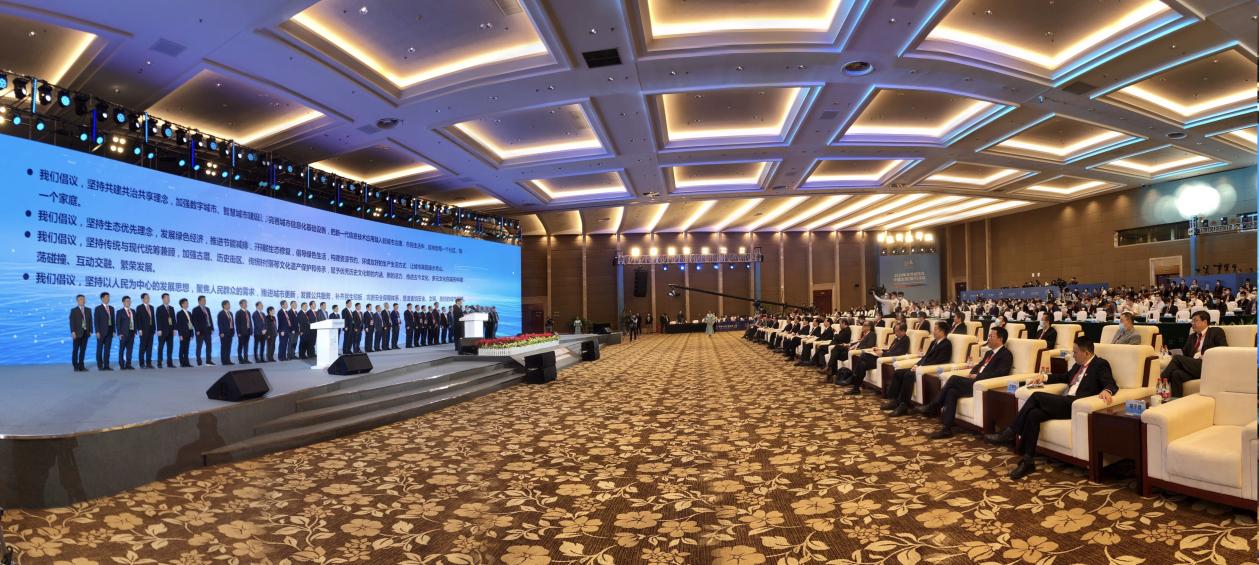 Reading of the Fuzhou Initiative by Fuzhou Mayor You Mengjun in the presence of leaders from participating cities on the stage