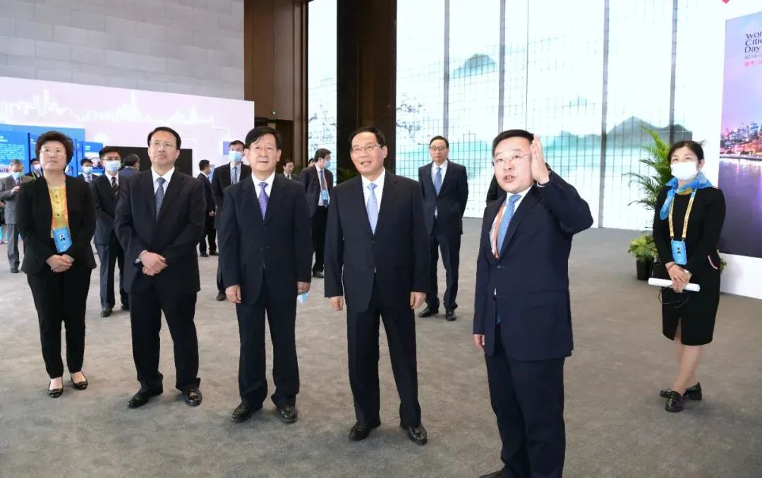 开幕式前,李强、龚正等察看了世界城市日中国城市发展案例展,听取世界城市日全球主场和中国主场活动相关情况介绍