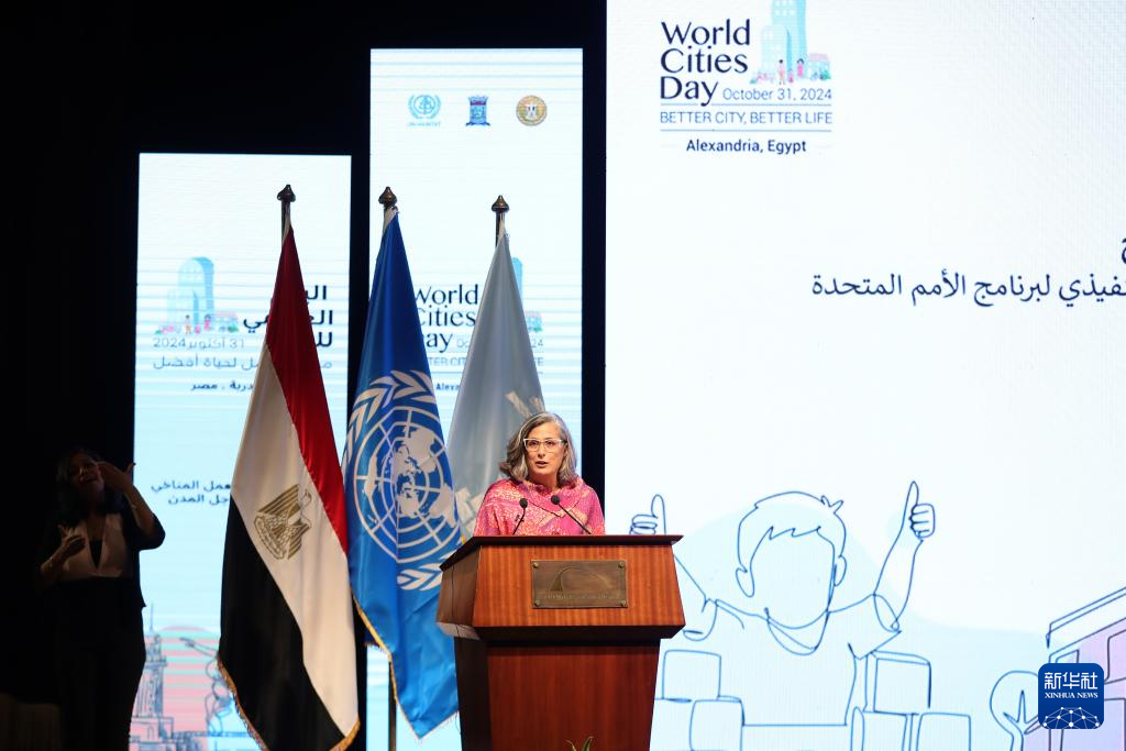 10月31日,在埃及亚历山大,联合国人居署执行主任阿纳克劳迪娅·罗斯巴赫在活动上致辞。新华社记者 王东震 摄