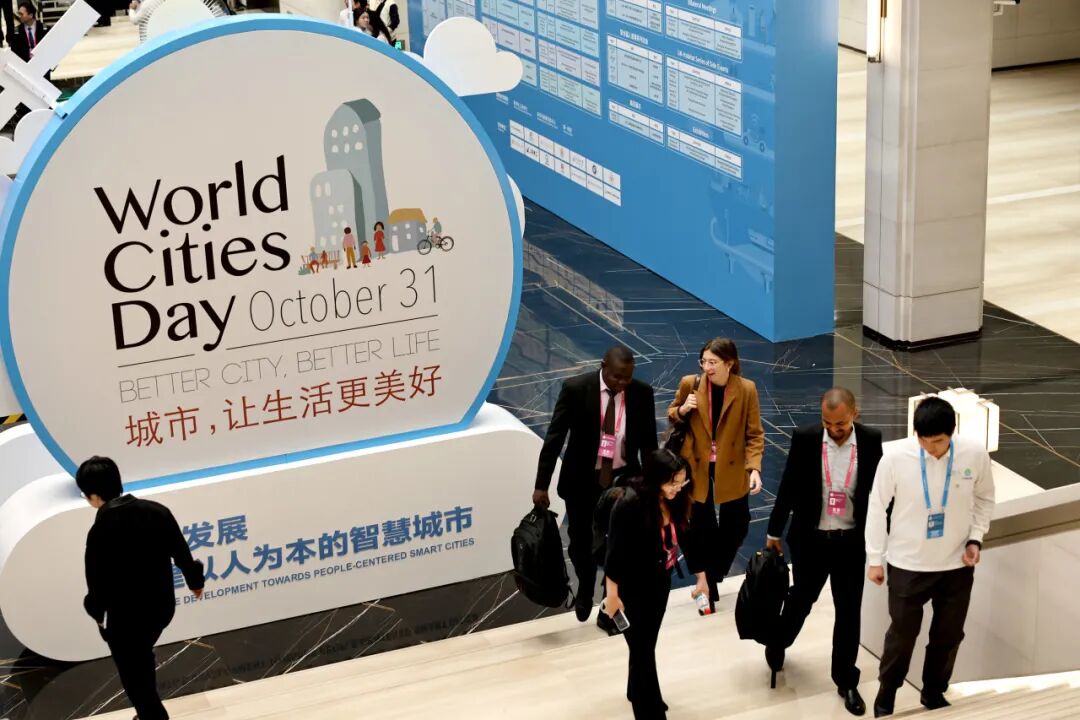 与会嘉宾进入2025世界城市日城市可持续发展全球大会全体大会会议厅。