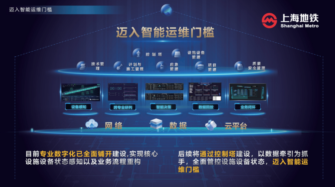 案例简介:上海轨道交通“智慧维保”工程自2000年筹划起,整体经历了摸索、试点、发展和规划实施四个阶段,全面实践了轨道交通运维的数字化转型。该项目由申通地铁集团主导,历时20余年在超大规模的地铁网络中首次实现了企业级数字化转型,利用人工智能技术进行设备故障预测与智能运维,显著提升了轨道交通系统的运营可靠性和乘客出行体验。通过这一创新,上海的轨道交通管理树立了智慧城市基础设施管理的标杆。